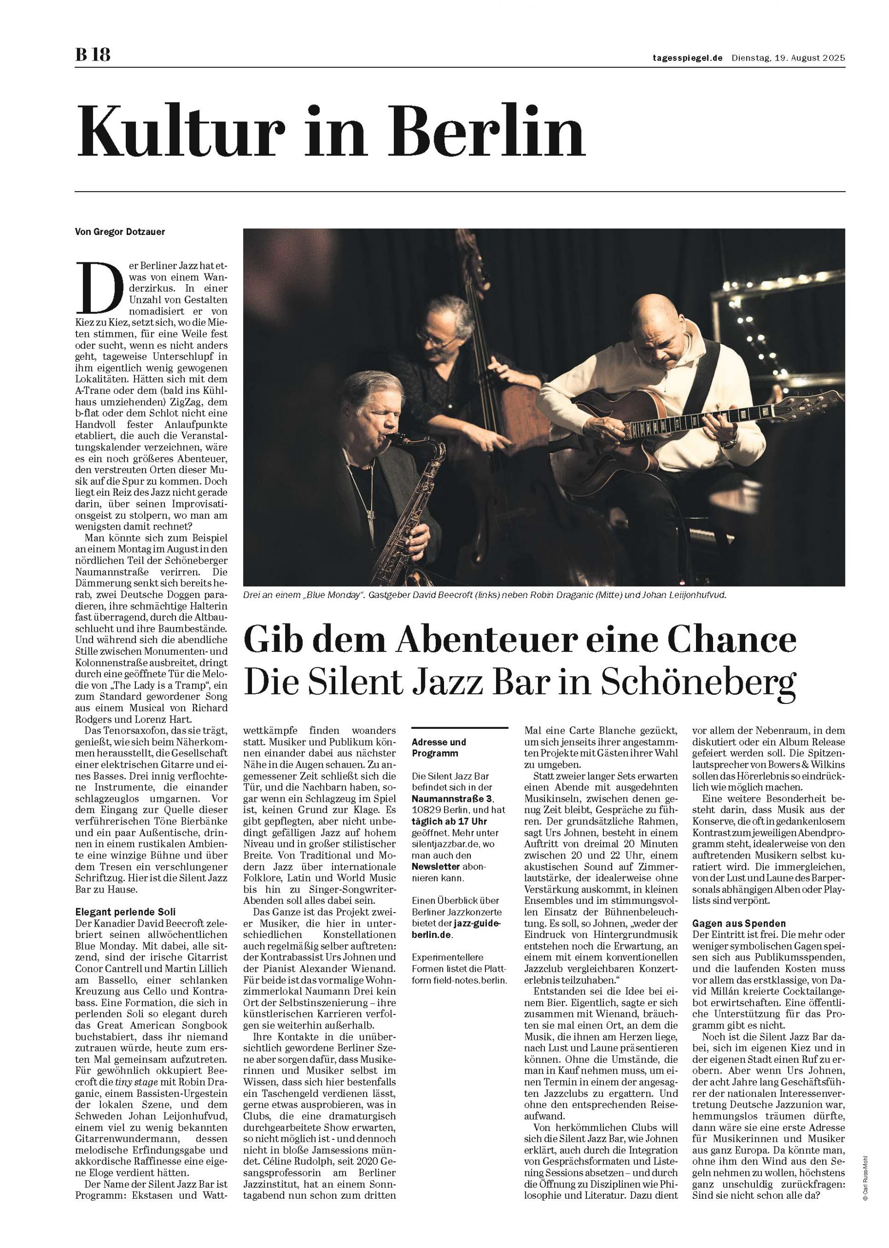 Run by a collective of professional jazz musicians, our place in the heart of Berlin-Schöneberg is designed to be a laboratory and studio to experience recorded and live jazz music as well as all kinds of talk and discourse round about jazz. And a large variety of very good drinks!